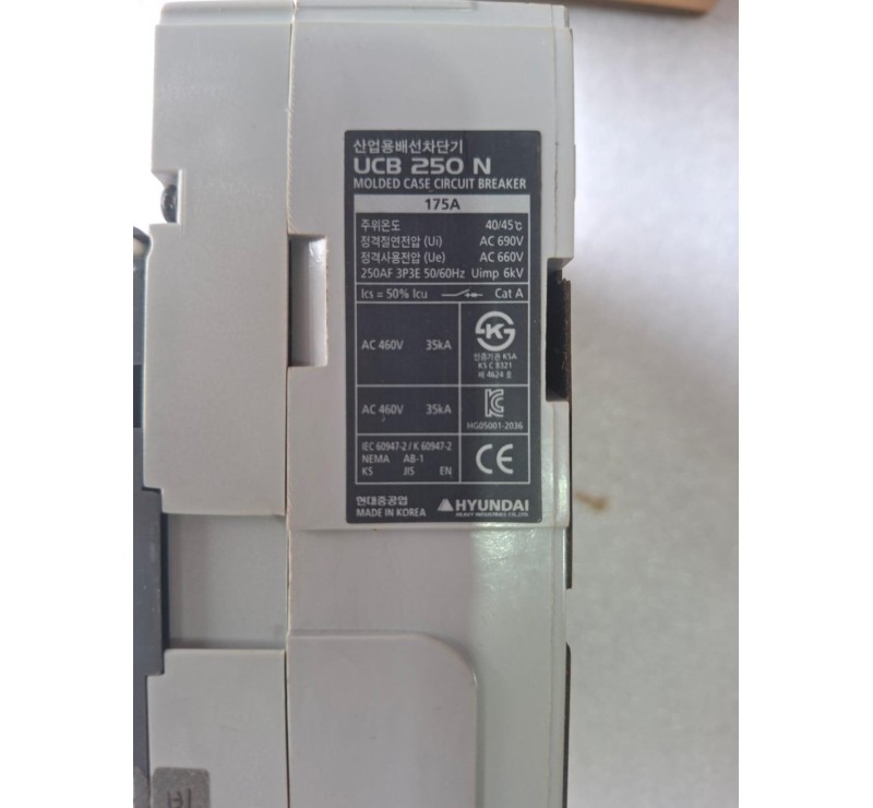 HYUNDAI UCB 250N MOLDED CASE CIRCUIT BREAKER 175A 3P MCCB HYUNDAI 175A 440V/35KA